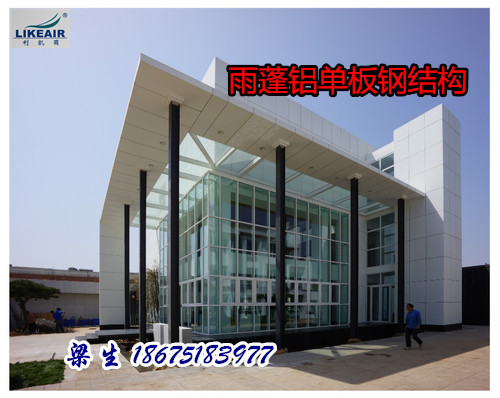 鋁板雨棚(篷)的優(yōu)點:目前鋼結(jié)構(gòu)鋁板雨棚是性價比最_高_,壽命最_長的雨棚,適合飛機場,銀行,大型超市,政府工程,學(xué)校,酒店,別墅都可以。
