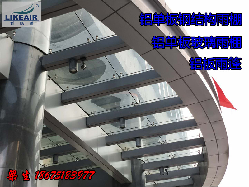 主龍骨架以鋼結(jié)構(gòu)為主,頂部采用鋁板和鋼化夾膠玻璃,鋼結(jié)構(gòu)或鋁合金永遠不生銹,不變形,也不用擔(dān)心高_空有墜落物掉下砸壞鋁板雨棚。