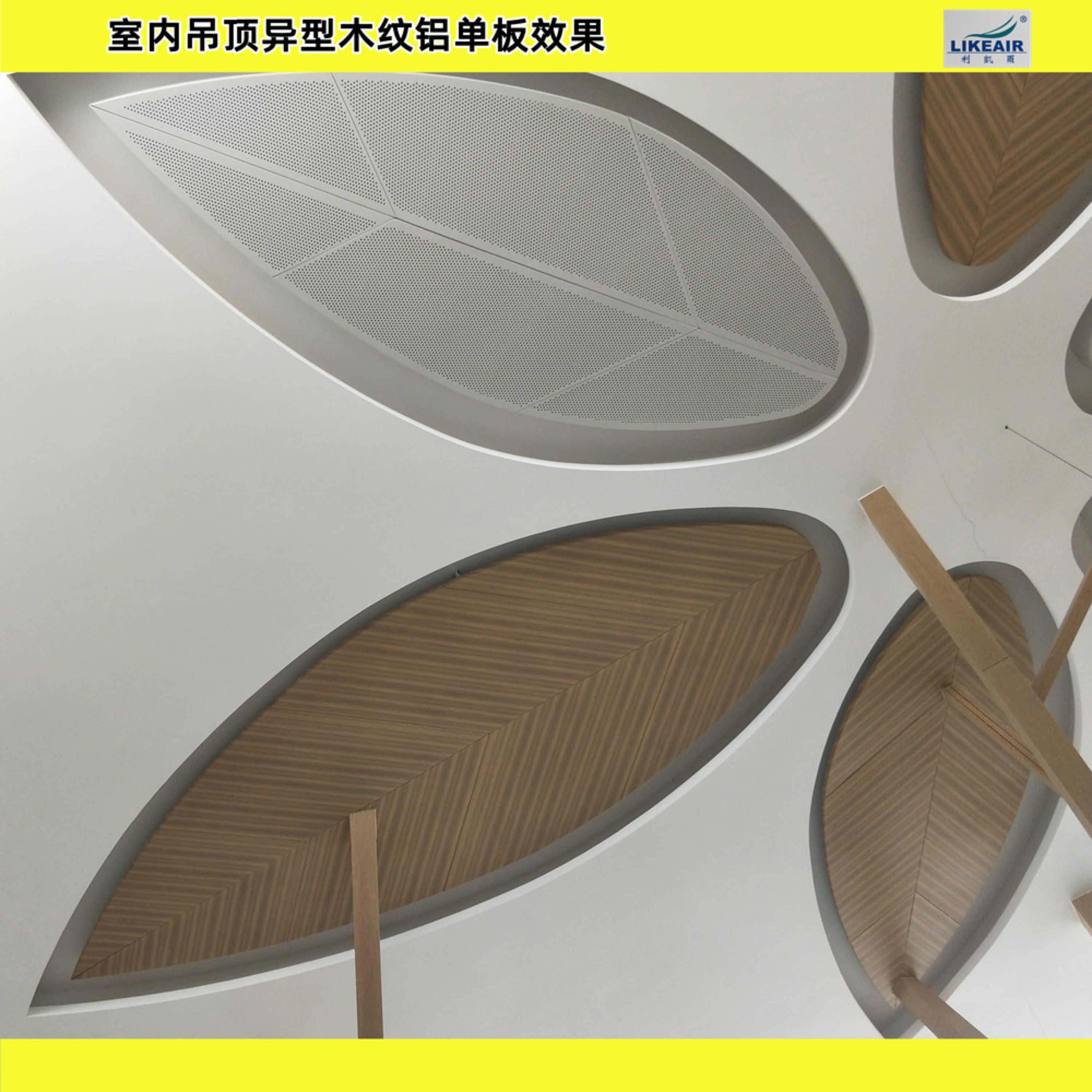 1. 仿木紋鋁單板按照圖紙將鋁單板鈑金成型后,用粉 末涂料均勻噴涂在鋁單板板面,