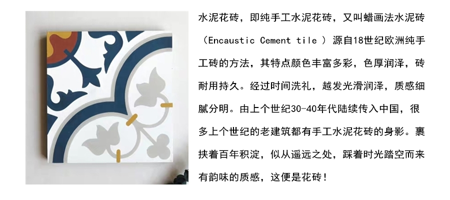 河南砼語(yǔ)建筑材料有限公司是集研發(fā)、生產(chǎn)、銷售水泥花磚、墻飾品、工藝品等為一體的專業(yè)化公司。產(chǎn)品皆采用國(guó)際優(yōu)質(zhì)原材料和先進(jìn)技術(shù),豐富多變,色澤典雅,嚴(yán)格按照質(zhì)量體系要求生產(chǎn)而成。可依據(jù)設(shè)計(jì)師要求定制產(chǎn)品,最大程度滿足設(shè)計(jì)要求。產(chǎn)品可廣泛應(yīng)用于別墅、公寓、酒吧、圍墻、度假村、鄉(xiāng)村建筑、咖啡館、高爾夫球場(chǎng)、園林、庭院、居室大廳等建筑內(nèi)外墻及地板裝飾。