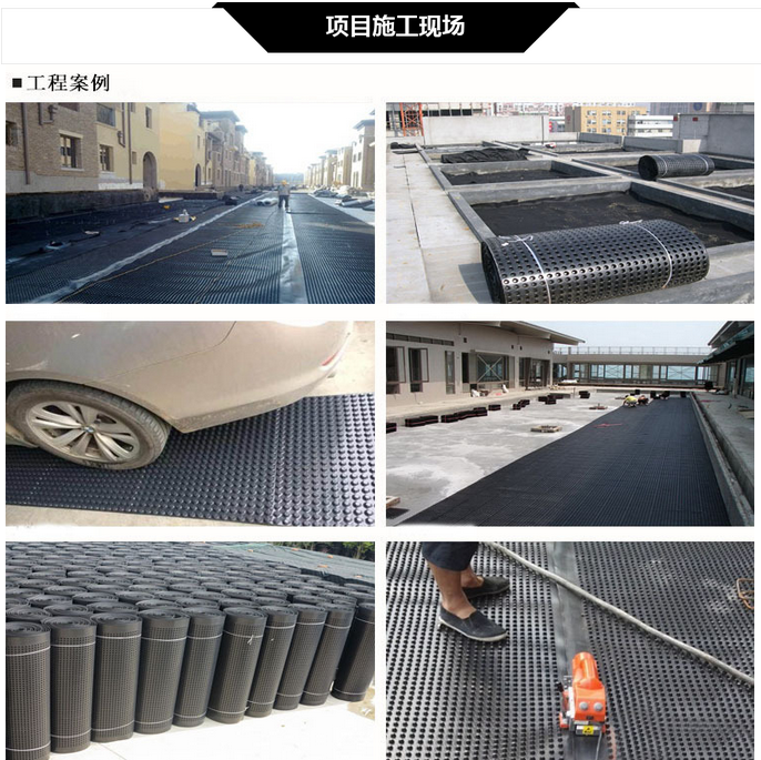 濾水板根據(jù)型號有0.8cm,1.2cm,1.5cm,2.0cm,2.5cm,3.0cm,4.0cm,5.0cm,6.0cm。廣泛應用于屋面種植、屋頂綠化、地下車庫頂板綠化、高爾夫球場、草坪球場排水,并可大量蓄水于支柱內。每塊之間可以相互扣接,在鋪好的濾水板上鋪上一層土工布,從而形成一個組合濾水板。