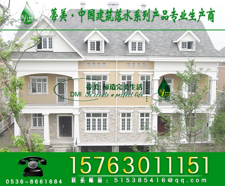 dmi建材有限公司經(jīng)營的pvc落水系統(tǒng),產(chǎn)品材料采用尊貴的亞光白,無鉛配方的pvc材料并有本產(chǎn)品材料采用尊貴的亞光白,無鉛配方的pvc原材料,并有綠色環(huán)保的承諾。