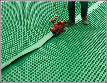 2、在材料鋪設(shè)結(jié)束后,可進(jìn)行下一道工序,趕快鋪設(shè)好過濾土工布和基質(zhì)層,避免泥土、水泥、黃砂阻塞孔道或進(jìn)入片材塑料排水板的蓄水、水槽、排水通道。