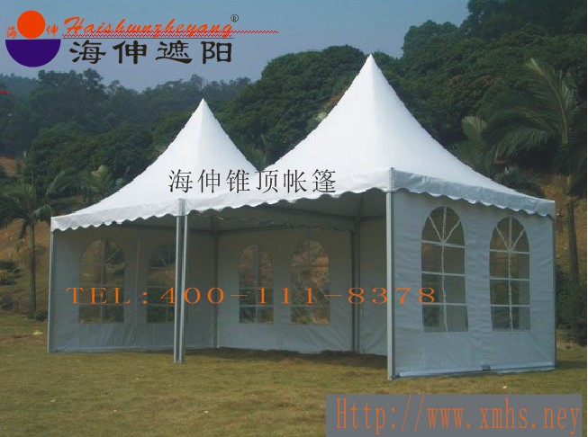 b)布頂四角各有一個吊扣,起風時可用來拉住沙袋,起防風作用。