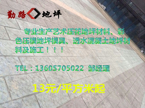 勤路混凝土壓模地坪藝術彩坪,壓模地坪,壓花地坪,景觀道路,透水地坪工程遍布祖國大江南北,我公司本著廣交朋友,薄利多銷、質(zhì)優(yōu)價廉的原則,真誠與各工業(yè)地坪施工商、園林綠化工程的同仁攜手共進,共同創(chuàng)造美好生活。(詳情咨詢 tel:13605705022 鄒經(jīng)理)
