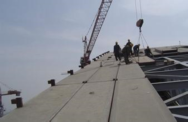 鋼骨架輕型屋面板主要有輕鋼架、冷拔低碳鋼絲、輕質(zhì)無機復合芯材及復合抗?jié)B涂層組成,采用獨特工藝澆注成型的建筑輕型復合板材,獲得國家專利,并列入國家建筑高新技術(shù)產(chǎn)品。鋼骨架輕型屋面板節(jié)點設計合理,安 裝快捷,維護方便,板型靈活,不受固定模具限制,可以按照建筑設計要求配板,最大限度滿足用戶需要。本產(chǎn)品銷往國內(nèi)三十多個省市、自治區(qū),并出口東南亞、東歐、澳洲等十幾個國家。