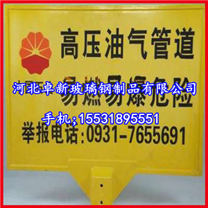 玻璃鋼電力警示牌,中石油管道玻璃鋼標志牌,電力玻璃鋼警示牌,中石油燃氣管道指示牌,玻璃鋼電力警示牌,燃氣管道指示牌,自來水管道標識牌,用手糊玻璃鋼材料,工藝為手工制作,自然冷卻成品,樹脂同固化劑 在自然條件下發(fā)生反應(yīng),常常伴隨著有氣體產(chǎn)生,所以貼上反光膜后容易起泡,而且,手工操作,因人而已,常常壁厚不均等因素 ,不適合大批量生產(chǎn)。 擠出玻璃鋼工藝。由于受制于工藝要求,擠出玻璃鋼表面不平,有氣孔,所以對反光膜的粘接力不足。所以也不適宜做交通標志底板。 模壓玻璃鋼是在高溫高壓下成型的,表面平,對反光膜的附著力滿足要求。按交通部測試反光膜對標志底板附著性能的實驗,實驗5分鐘后,反光膜的氤ざ任?-4mm,大大小于標準要求的20mm。