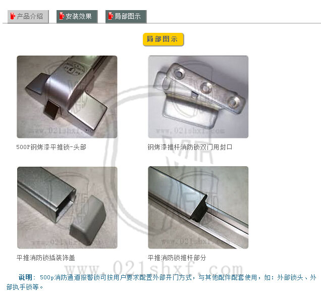 3、門內(nèi):推杠式逃生鎖體;門外:帶鑰匙保險鎖頭