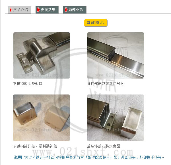 500p單向逃生鎖裝置于適用門的表面,除安 裝鎖芯或執(zhí)手鎖外不對門做任何較大的開槽或開孔工作。