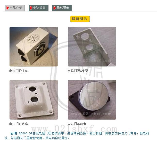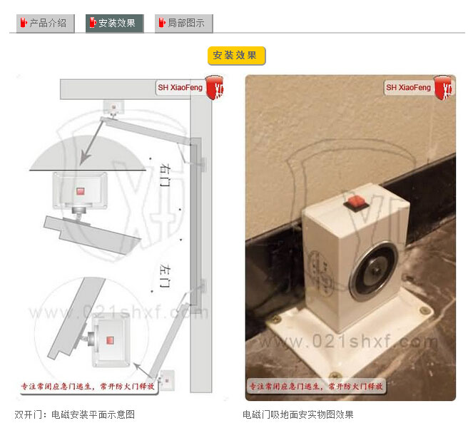 如果是雙開門使用需要加裝順位器或通過(guò)閉門器使先調(diào)整好閉門順序達(dá)到適放后防火門閉合到位。 要求防火門手動(dòng)釋放或聯(lián)動(dòng)釋放后均通反饋信號(hào)至控制中心必須事先布4芯線至電磁門吸安 裝的位置。