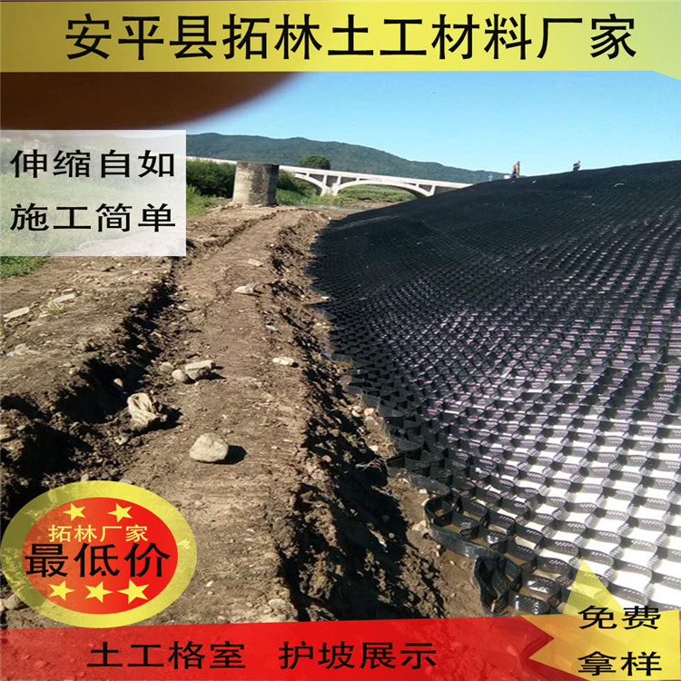 土工格室是由高強度的hdpe片材料,經(jīng)過強力焊接而形成的一片網(wǎng)狀格室結(jié)構(gòu)。一般經(jīng)超聲波針式焊接而成。因工程需要,有的在膜片上進行打孔
