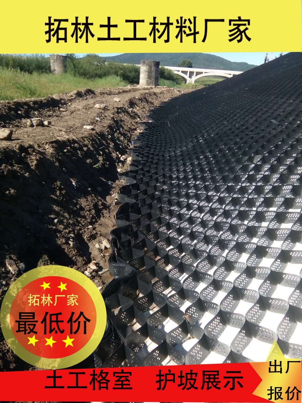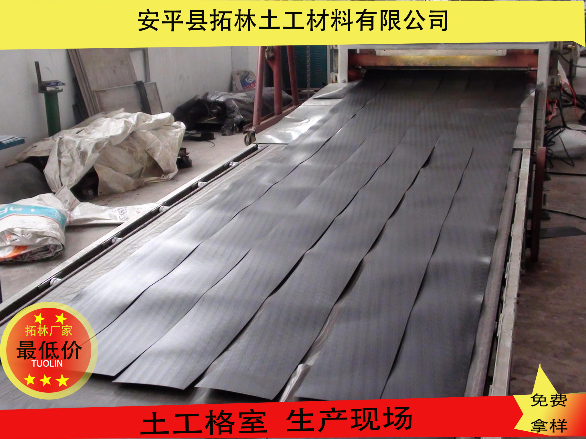 土工格室是由強化的hdpe片材料,經(jīng)高強力焊接而形成的一種三維網(wǎng)狀格室結(jié)構(gòu)。一般經(jīng)超聲波針式焊接而成。因工程需要,有的在膜片上進行打孔