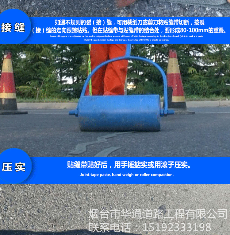 華通公司新型路面貼縫帶打破了那種無紡布涂覆瀝青傳統的的抗裂貼,廉價的抗裂貼只用于基層裂縫處理,無法轉彎,無彈性,不能用于路面裂縫。