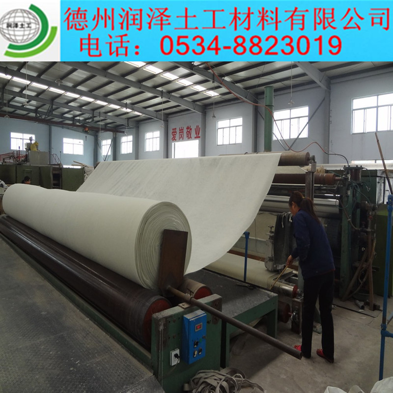 土工布的施工細(xì)則:在運(yùn)輸過程中土工布要避免受到物理的損壞。受嚴(yán)重磨損的土工布不能在工程中使用。在工程現(xiàn)場,土工布應(yīng)該堆放于經(jīng)平整不積水的地方,堆高不超過五卷的高度,并能看到卷的識別片。土工布用不透明材料覆蓋以防紫外線老化。在儲存過程中,要保持標(biāo)簽 的完整和資料的完整。在土工布鋪設(shè)時,檢查基層是否平整、堅(jiān)實(shí),如有雜物,應(yīng)及時處理妥善。根據(jù)現(xiàn)場情況,確定土工布尺寸,裁剪后予以試鋪,用人工滾鋪;布面要平整,并適當(dāng)留有變形余量。在坡面上,對土工布的一端進(jìn)行錨固,然后將卷材須坡面放下以保證土工布保持拉緊的狀態(tài)。所有的土工布都須用砂袋壓住,砂袋將在鋪設(shè)期間使用并保留到鋪設(shè)上面一層材料。土工布的接縫用搭接、縫合和焊接方法?p合和焊接的寬度一般為10厘米以上,所有的縫合要連續(xù)進(jìn)行。同時采取相應(yīng)的措施避免土壤、顆粒物質(zhì)進(jìn)入土工布層。