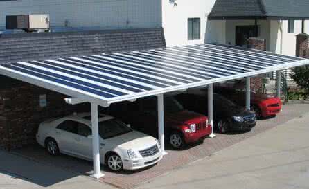 光伏板停車(chē)棚是將光伏發(fā)電與車(chē)棚相結(jié)合的系統(tǒng)。既能為車(chē)輛遮風(fēng)擋雨,又能利用太陽(yáng)能創(chuàng)造出清潔光伏能源供電動(dòng)車(chē)充電、燈光照明和并入電網(wǎng)。減少二氧化碳排放,符合低碳經(jīng)濟(jì)、綠色環(huán)保的全球發(fā)展趨勢(shì)。