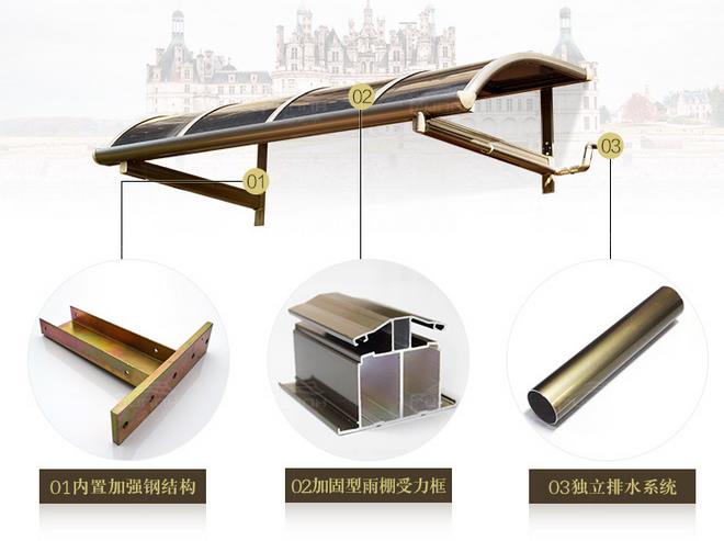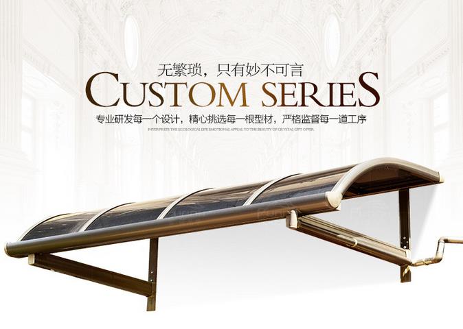 定制小區(qū)陽臺屋頂遮陽鋁合金雨棚,防曬、抗紫外線、不老化。