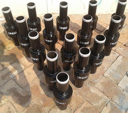 廠家直銷 質(zhì)量上乘 規(guī)格齊全 聯(lián)系電話 :18831765124 qq260925004聯(lián)系人:張經(jīng)理老式ⅰ型絕緣法蘭的構(gòu)成是在兩片對焊平面法蘭之間加裝法蘭絕緣墊片及在緊固連接螺栓上加裝絕緣套與絕緣螺栓墊片組成。其結(jié)構(gòu)組裝圖如圖1所示,其法蘭絕緣墊片材料選用耐油橡膠石棉板、氯 丁橡膠板、織物基氯 丁橡膠板和聚四氟乙烯等材料制造。絕緣螺栓套和螺栓絕緣墊片采用高強(qiáng)度的酚醛 層壓布板及壓布管制作。其特點(diǎn)是:鋼性好,絕緣性能穩(wěn)定,需要有專門的安 裝位置專門安 裝,造價高對老式絕緣法蘭的結(jié)構(gòu)進(jìn)行了適用型改進(jìn)。在城市燃?xì)廨斉涔こ讨,針對城市燃(xì)廨斉涔こ虊毫Φ停╬n≤2.5mpa),管網(wǎng)壓力pn≤0.4mpa的特點(diǎn)進(jìn)行改進(jìn)。在管網(wǎng)輸配工程中運(yùn)用鋼制平面法蘭代替對焊平面法蘭,法蘭絕緣墊片采用聚四氟乙烯、耐油橡膠石棉片、氯 丁橡膠等材料制造,而將緊固螺栓的絕緣套及絕緣墊會二為一,且縮短絕緣套一半做成整體式高強(qiáng)度絕緣套墊。將穿套墊鋼法蘭的螺栓孔擴(kuò)大至能穿絕緣套墊;從而保證套墊內(nèi)孔徑適合原鋼法蘭所用螺栓的要求,這樣便制成了一種特殊作用的鋼法蘭,組裝后便成了新型絕緣法蘭,其結(jié)構(gòu)安 裝如圖3、4所示。它既可單獨(dú)安 裝,也可與連接閥門一并安 裝;既節(jié)約了工程費(fèi)用,又節(jié)約了現(xiàn)場安 裝位置,是一種簡單適用的新型絕緣法蘭,且造價特別低。絕緣法蘭的工作原理是,利用絕緣法蘭中的絕緣墊片及高強(qiáng)度絕緣套墊的電絕緣性能進(jìn)行絕緣法蘭兩邊的電絕緣進(jìn)行工作的。根據(jù)工程實(shí)際,我們對該絕緣法蘭的絕緣性能按《絕緣法蘭設(shè)計技術(shù)規(guī)定》(sy/t0516--1997)中的有關(guān)要求及《埋地鋼質(zhì)管道陰極保護(hù)參數(shù)測試方法》(syj23—86)中的有關(guān)方法進(jìn)行測試,測試結(jié)果表明:絕緣墊片及緊固螺栓的絕緣套墊在絕緣工作表面間的電阻值能滿足規(guī)范要求。