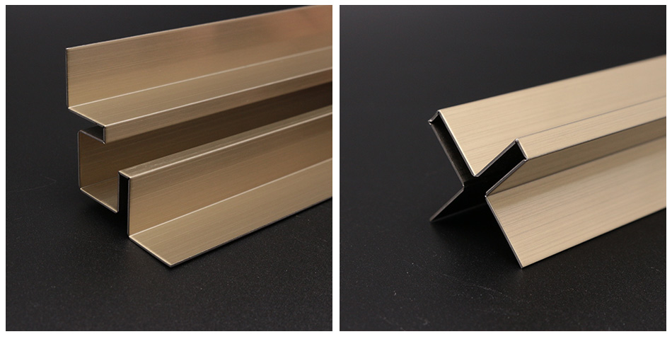 不銹鋼線條制作是通過剪切、折彎、加工等多道繁鎖工序制作,安 裝起來很方便,香檳金色不銹鋼包邊線條是在相同或不同材質之間的平面銜接部分安 裝的條狀材料,香檳金色不銹鋼包邊線條電視背景墻多寬,例如地板和踢腳線之間、地板和地磚之間,瓷磚與瓷磚之間,樓梯口收邊收口,天花板之間等。因為不同材質的膨脹率不同,扣條蓋在接縫上可以為這種差異提供余量,防止拱翹,不銹鋼裝飾線條,也起到收邊收口美化作用。安 裝時,下料切割后只需用螺栓和插接件固定在墻上即可,本型材與傳統木制踢腳線相比,更加美觀牢固,綠色環(huán)保,而與傳統工藝制作的香檳金色不銹鋼包邊線條相比,價格低廉,安 裝方便。