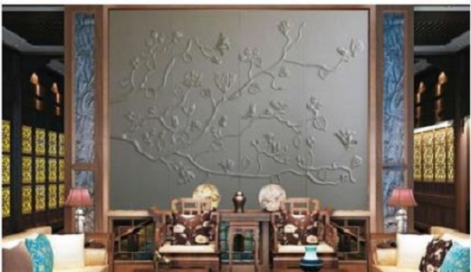 軟裝鳥語花香浮雕背景墻刺繡手繪護墻板