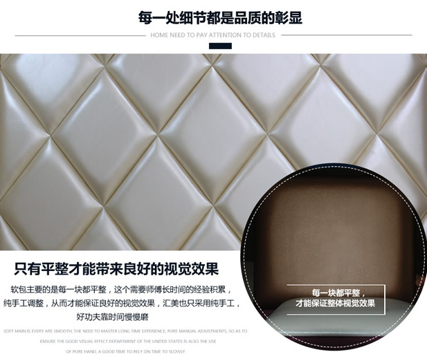 環(huán)保皮。之所以選它是因為在整個軟包工藝中,大致有一般pu皮負離子環(huán)保凈味皮。牛皮纖維合成革絨布 麻 布等每種都各具特色而結(jié)合目前軟包需求的多樣化以及客戶所選經(jīng)濟環(huán)保上考慮大部分客戶選擇負離子凈味環(huán)保皮主要具有色彩靚麗,質(zhì)感強環(huán)保將康等特點錯落有致的釘扣細節(jié),每一處都無褶皺處理,注重細節(jié)讓你買的放心,看的舒心,用的安 心