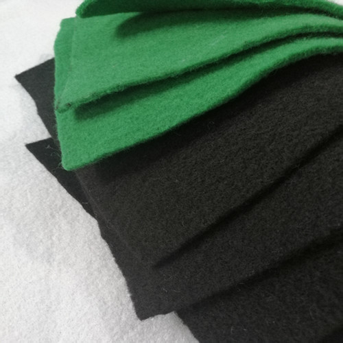 黑色滌綸短纖土工布是非織造用布的一種。是采用纖維纖度為6-12旦,長度為54-64mm的滌綸卷曲短纖維為原材料。通過無紡生產(chǎn)設(shè)備的開松,梳理,雜亂(短纖維相互交織在一起),鋪網(wǎng)(規(guī)格化纏結(jié)固著)等生產(chǎn)工藝的流程制成布狀。
