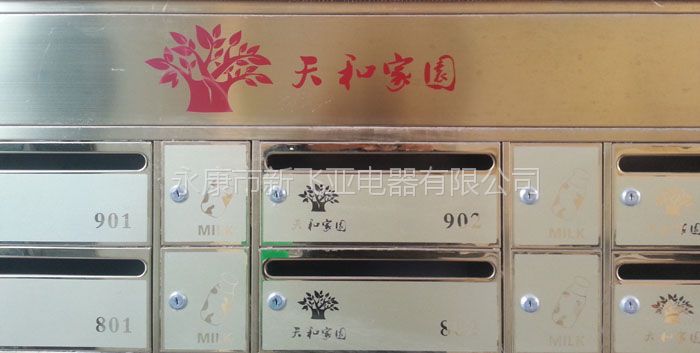 新飛亞信報箱承制的溫州天和家園豪華不銹鋼信報奶箱;