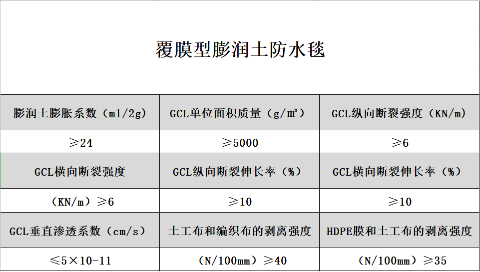 產(chǎn)品特點(diǎn):1、密實(shí)性:鈉基膨潤(rùn)土在水壓狀態(tài)下形成高密度橫膈膜,厚度約3mm時(shí),它的透水性為&×10-11m/sec以下,相當(dāng)于100倍的30cm厚度粘土的密實(shí)性,具有很強(qiáng)的自保水性能;2、具有很長(zhǎng)的防水性能:因?yàn)殁c基膨潤(rùn)土是天然無(wú)機(jī)材料,即使經(jīng)過(guò)很長(zhǎng)時(shí)間或周圍環(huán)境發(fā)生變化,也不會(huì)發(fā)生老化或腐蝕現(xiàn)象,因此防水性能持久;3、施工簡(jiǎn)便,工期短:和其他防水材料比較,施工相對(duì)比較簡(jiǎn)單,不需要加熱和粘貼。用膨潤(rùn)土粉 末和釘子、墊圈等進(jìn)行連接和固定。施工后不需要專門(mén)的檢查,如果發(fā)現(xiàn)防水缺陷也容易維修。gcl是現(xiàn)有防水材料中施工工期較短的;4、不受氣溫影響:在寒冷氣候條件下也不會(huì)脆斷;5、防水材料和對(duì)象的一體化:鈉基膨潤(rùn)土遇水時(shí),具有20-28倍的膨脹能力,即使混凝土結(jié)構(gòu)物發(fā)生震動(dòng)和沉降,gcl內(nèi)的膨潤(rùn)土也能修補(bǔ)2mm以內(nèi)混凝土表面的裂紋;6、綠色環(huán)保:膨潤(rùn)土為天然無(wú)機(jī)材料,對(duì)環(huán)境沒(méi)有大的影響,具有良好的環(huán)保性能。