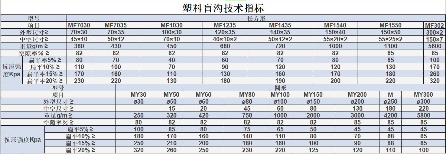 塑料盲溝是由改性聚丙烯熱熔后的亂絲搭結(jié)而形成的框架結(jié)構(gòu),外可包裹一層土工布。泥沙經(jīng)過土工布過濾成清水后進(jìn)入塑料盲溝內(nèi)從而排放出去,塑料盲溝的斷面可以根據(jù)客戶工程需要做成各種規(guī)格形狀,主要為圓形和長方形。