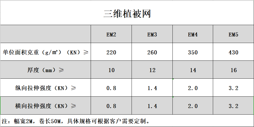 三維植被網(wǎng)是一種新型土木工程材料(hdpe高密度聚乙烯),屬于高新技術(shù)產(chǎn)品目錄中新型材料技術(shù)領(lǐng)域重復(fù)各材料中的增強(qiáng)體材料。是用于植草固土用的一種三維結(jié)構(gòu)的似絲瓜網(wǎng)絡(luò)樣的網(wǎng)墊,質(zhì)地疏松、柔韌,留有90%的空間可填充土壤,植物根系可以穿過(guò)其間岸,舒適、整齊、均衡的生長(zhǎng),長(zhǎng)成后的草皮使網(wǎng)墊、草皮、泥土表面牢固地結(jié)合在一起,由于植物根系可深入地表以下30--40cm,形成一層堅(jiān)固的綠色復(fù)合保護(hù)層。