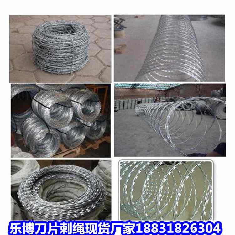 工藝:采用鋼板(刀板)沖壓成型包附于熱鍍鋅鋼絲(芯線)之上,由銳利尖角鍍鋅鋼板或 不銹鋼薄板做刀片,高張力鋼絲做芯線組合而成的。