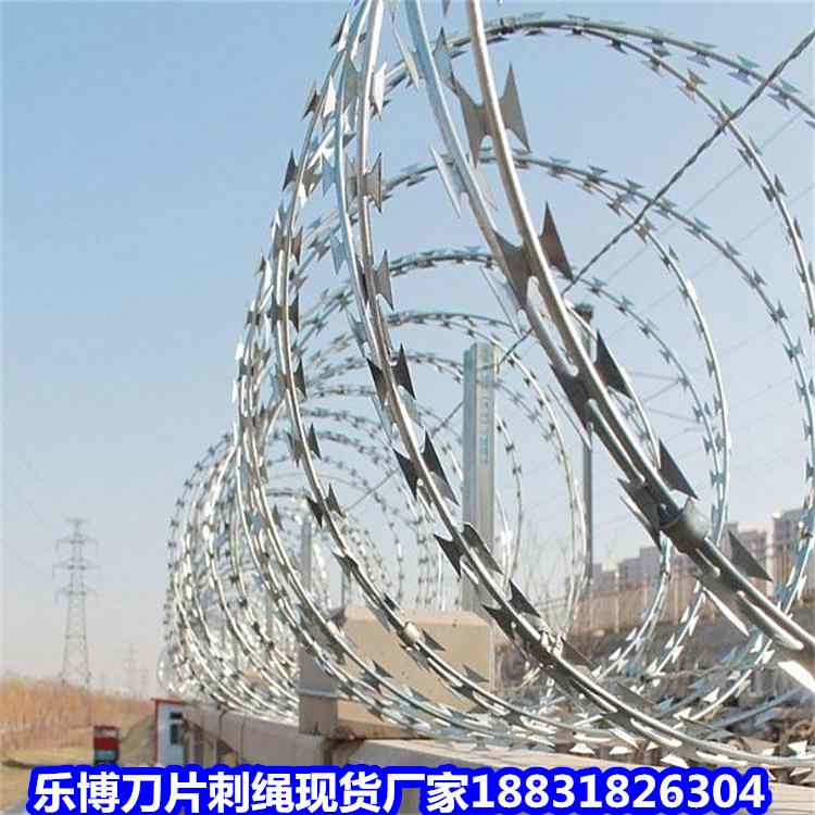 用途:世界各國已將刀片刺繩廣泛用于軍事重地、監(jiān)獄、政府機關、銀行,以及生活小區(qū)圍墻、私人住宅、別墅的圍墻、門窗、高速公路、鐵路護欄以及邊境線等用來防護保安 。中國監(jiān)獄基本上用的都是刀片刺繩。