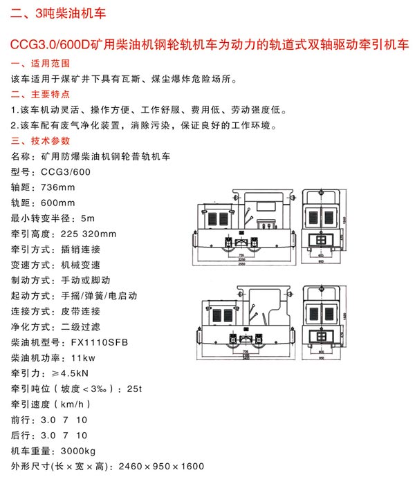 機(jī)車為動(dòng)力的軌道式雙軸驅(qū)動(dòng)牽引機(jī)車,它適用于煤礦井下具有瓦斯、煤塵爆炸危險(xiǎn)場(chǎng)所。
