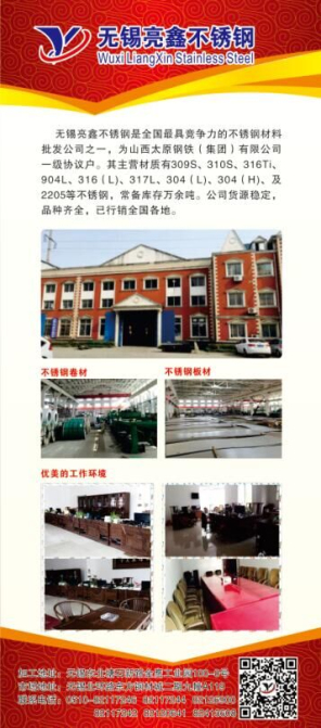 無錫亮鑫不銹鋼有限公司有大量出售310s、309s、1cr20ni14si2、1cr25ni20si2、316ti、316l、304(l)、317l、347h、321、2205、904l等不銹鋼,規(guī)格齊全,質(zhì)量保證,價格優(yōu)惠,歡迎新老客戶來電咨詢洽談。另我公司還可為客戶辦理,開平分條水切割激光切割等離子機磨砂機壓花機拋光磨鏡面等一系列高端加工業(yè)務(wù),真誠希望與您的合作!