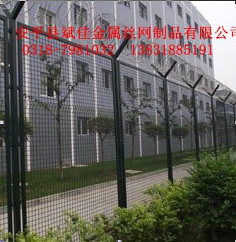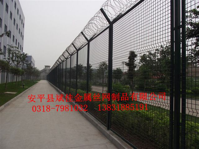 飛機場護欄網(wǎng),監(jiān)獄防護網(wǎng)等都被稱為高安全防護網(wǎng),是機場,監(jiān)獄,廠區(qū),軍事基地最常用的隔離網(wǎng)。我廠生產(chǎn)的這種高安全圍網(wǎng)全部采用低碳鋼絲和y型鋼管組成,使用壽命在10-15年之間。y型柱上面都可架刀刺網(wǎng),刀刺網(wǎng)分為兩種一種為不銹鋼刀刺網(wǎng)這種最短10年不生銹,還有一種是熱鍍鋅刀刺網(wǎng),這種一般在3-5年就生銹了,一般監(jiān)獄和飛機場均用不銹鋼刀刺網(wǎng)。