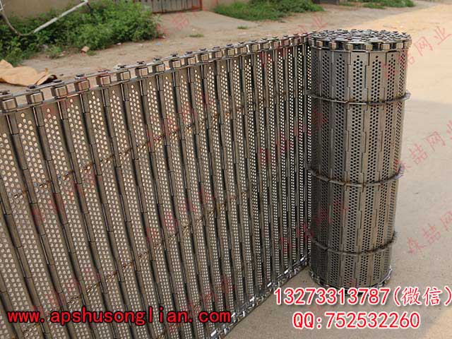,并大小網(wǎng)條連接而成,大網(wǎng)條內穿進小軸,小軸二端穿入鏈條孔,從而達到鏈條驅動輸送網(wǎng)帶。鏈條