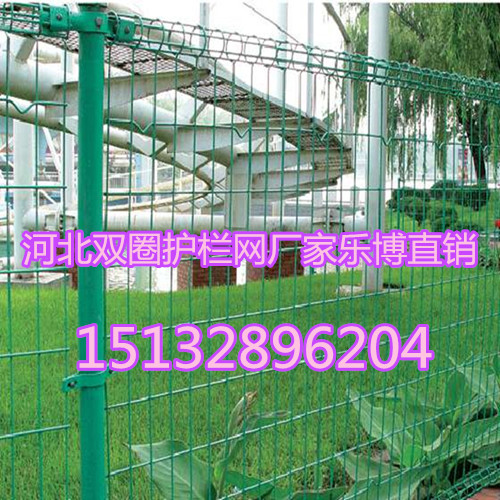 雙圈護(hù)欄網(wǎng)是用冷拔低碳鋼絲焊接成網(wǎng)筒狀卷邊與網(wǎng)面一體,采用鍍鋅進(jìn)行防腐處理,具有很強(qiáng)的耐腐蝕性,然后進(jìn)行噴、浸塑,各種顏色的噴、浸塑;后連接附件與鋼管支柱固定。