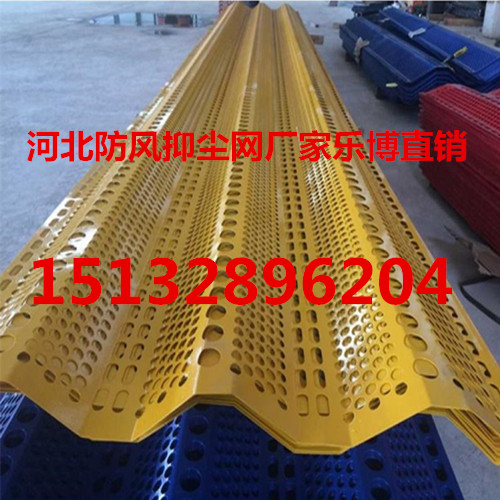 防風(fēng)抑塵網(wǎng)是利用空氣動力學(xué)原理,按照實(shí)施現(xiàn)場環(huán)境風(fēng)洞實(shí)驗(yàn)結(jié)果加工成一定幾何形狀、開孔率和不同孔形組合擋風(fēng)抑塵墻,使流通的空氣(強(qiáng)風(fēng))從外通過墻體時(shí),在墻體內(nèi)側(cè)形成上、下干擾的氣流以達(dá)到外側(cè)強(qiáng)風(fēng),內(nèi)側(cè)弱風(fēng),外側(cè)小風(fēng),內(nèi)側(cè)無風(fēng)的效果,從而防止粉 塵的飛揚(yáng)。擋風(fēng)抑塵墻由獨(dú)立基礎(chǔ)、鋼結(jié)構(gòu)支撐、擋風(fēng)板三部分組成。