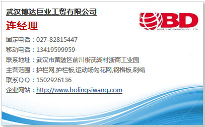 長期庫存:高1.2m--1.5m--1.8m--2m荷蘭網(wǎng),絲徑φ2.5--3mm,網(wǎng)孔50100mm/5050mm/25x25mm/12.7x12.7mm;標(biāo)配燕尾立柱:1.5米,1.8米,2.3米配件系列:柱帽、u型卡絲、(專用卡絲鉗)荷蘭網(wǎng)又名波浪網(wǎng)、波浪護(hù)欄網(wǎng)。英文名:holland wire mesh材質(zhì):低碳鋼絲、鋁鎂合金絲。編制方法:選用優(yōu)質(zhì)鐵絲焊接而成,將pvc或pe、pp粉 末經(jīng)過硫化處理涂其表面,具有附著力強(qiáng)、防腐性好,色澤光亮等。制造工序:鋼絲焊后涂塑,也可單獨電鍍、熱鍍及涂塑。1.絲徑2.0--3.0mm2.網(wǎng)孔50100mm、5050mm3.網(wǎng)寬:1m---2.0m;優(yōu)點:美觀大方,堅固耐用,方便運輸和安 裝,具有過濾精度好,負(fù)荷強(qiáng)度高。用途:應(yīng)用于高速公路、鐵路、機(jī)場、住宅小區(qū)、港口碼頭、飼養(yǎng)、畜牧等的防護(hù)。
