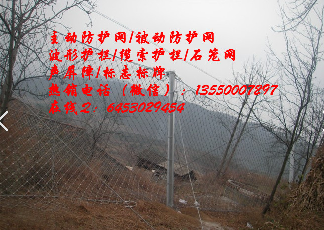 被動(dòng)防護(hù)網(wǎng)是由鋼絲繩網(wǎng)、環(huán)形網(wǎng)、(需攔截小塊落石時(shí)附加一層鐵絲格柵)、固定系統(tǒng)(錨桿、拉錨繩、基座和支撐繩)減壓環(huán)和鋼柱四個(gè)主要部分構(gòu)成。鋼柱和鋼絲繩網(wǎng)連接組合構(gòu)成一個(gè)整體,對(duì)所防護(hù)的區(qū)域形成面防護(hù),從而阻止崩塌巖石土體的下墜,起到邊坡防護(hù)作用。被動(dòng)網(wǎng)主要用于高速公路,國(guó)省干道,山區(qū)公路,鐵路沿線,水電站,隧道口,礦山,景區(qū),泥石流多發(fā)地帶等有緩沖地帶的高山峻嶺,把巖崩、飛石、雪崩、泥石流攔截在建筑設(shè)施之外,避開(kāi)災(zāi)害對(duì)建筑設(shè)施的毀壞等。