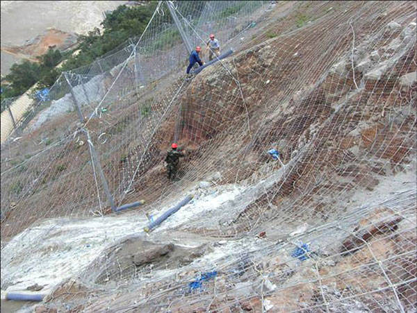 高強(qiáng)度格柵網(wǎng)a型 高強(qiáng)度鋼絲格柵 預(yù)應(yīng)力鋼筋錨桿+孔口凹坑+縫合繩(根據(jù)需要選用邊界支撐繩和鋼絲繩錨桿) 同gps2,能滿足可達(dá)100年的更長(zhǎng)的防腐壽命要求,但其加固能力僅為其70%~80%左右,不適合于體積大于1立方米大塊孤危石加固
