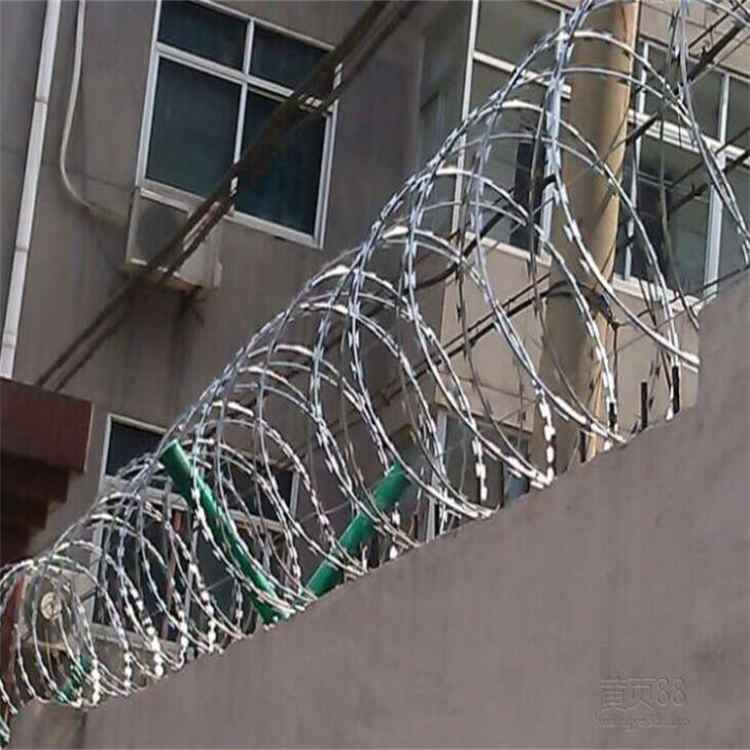 刀片刺繩一般用于監(jiān)獄做防護用,因刀片鋒利不易觸摸,起到一定的嚇阻作用那個,刀片刺繩,用途比較廣泛,他可以用于居民的墻體防護,也可以用來圈地等,該刺繩防盜效果比普通刺繩要好,價格也不高,所以刀片刺繩越來越應用廣泛。