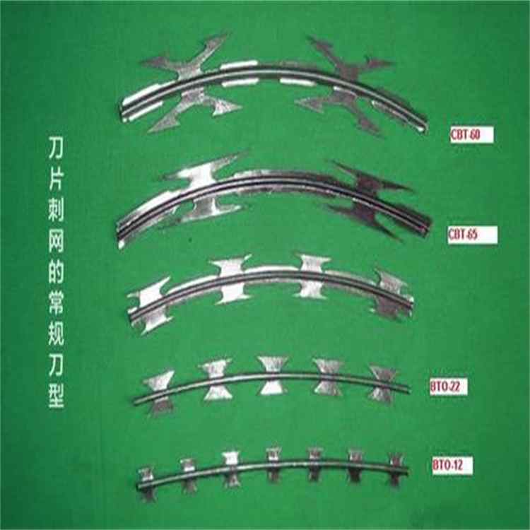 刀片刺網又名刮刀型刺絲,是一種發(fā)展起來的防護、隔離能力較強的新型防護網產品。鋒利的刀型刺由雙線扣裝后成蛇腹狀,既美觀又讓人不寒而栗。起到了很好的阻嚇作用。同時該產品具有美觀、防阻效果好、施工便利等優(yōu)點。