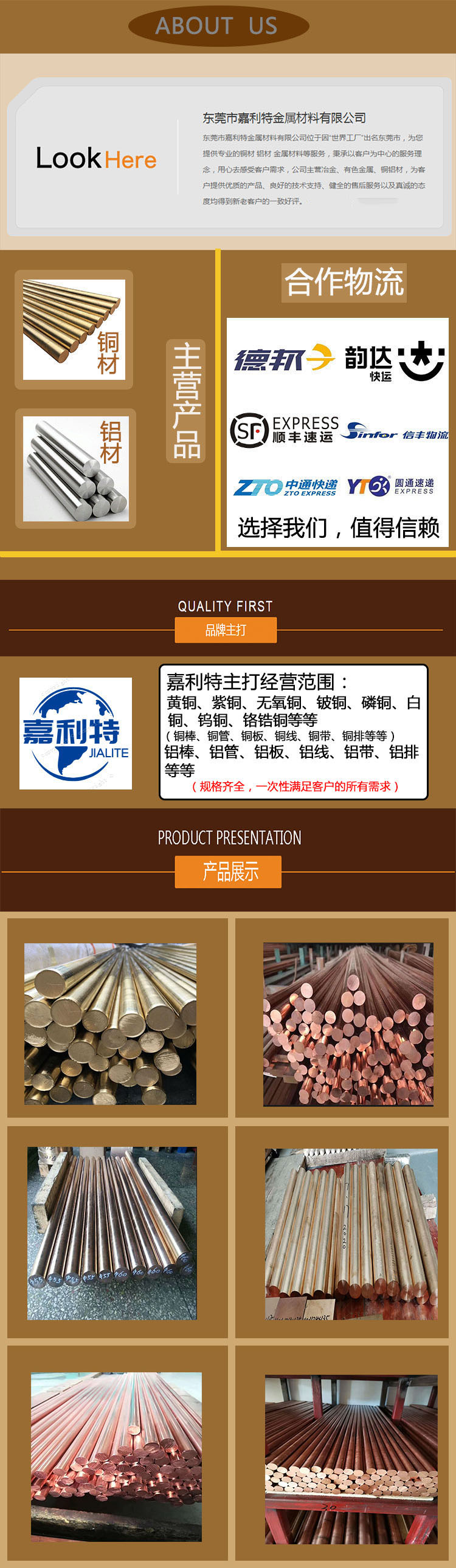 東莞市嘉利特金屬材料有限公司位于因“世界工廠”出名東莞市,為您提供專業(yè)的銅材 鋁材 金屬材料等服務,秉承以客戶為中心的服務理念,用心去感受客戶需求,公