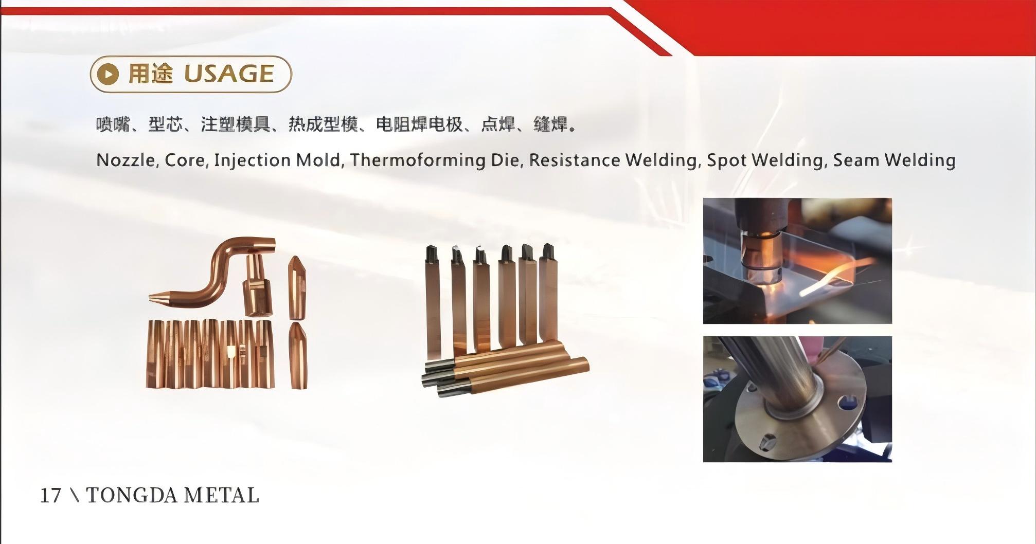 BeCuP1鈹銅用于注塑模具及高壓吹塑模,模具鑲塊,快速冷卻,鋁合金模具鑲塊,增加強度、耐磨性及縮短注塑周期,熱流道噴嘴,電極及沖頭材料,不受磁模具、無磁工具,高導(dǎo)熱軸承,可制作表面精度很高的鏡面。