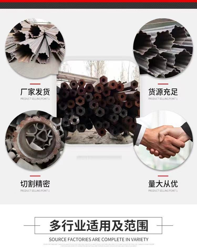 專業(yè)生產(chǎn) ;橢圓管、面包管、梅花管、三角鋼管、六角鋼管、八角鋼管、內(nèi)圓外六角無縫鋼管等多邊形不規(guī)則異型鋼管,可來圖紙定做,根據(jù)客戶的需求加工異型鋼管,填補了國內(nèi)對異型鋼管的需求。