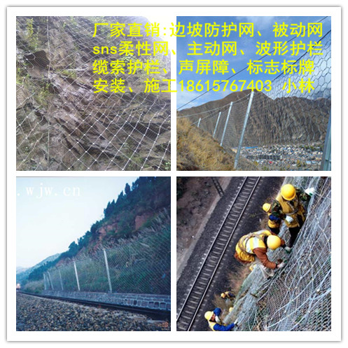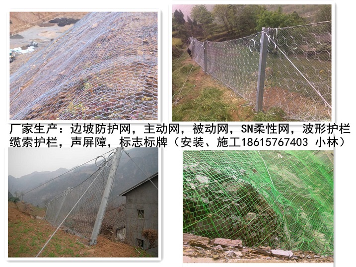 被動(dòng)防護(hù)網(wǎng)的常用規(guī)格:[鋼柱(間距10m),帶消能環(huán)的∮16雙支撐繩和∮16“人”字形上拉錨繩(每跨6個(gè)消能環(huán)),∮16側(cè)拉錨繩(單繩),◇/08/200/4*5㎡鋼絲繩網(wǎng),∮8縫合繩,格柵網(wǎng)