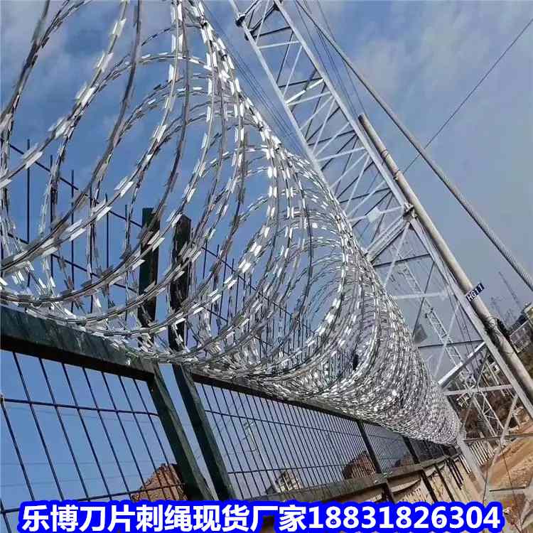 0.5米高刺絲滾籠組成:刺絲刺繩+刀刺滾籠+鋼絲+立柱