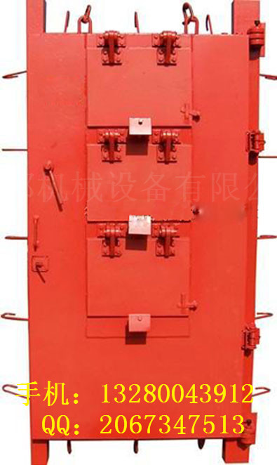 2、門扇上部裝有三組通風活門裝置,即在活門底板開有三組共18個直徑122mm的通風孔,活門板外部裝有自動張開12度角的活門懸板。