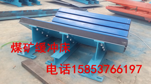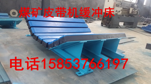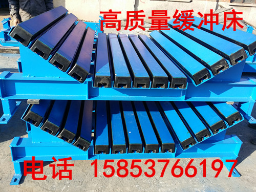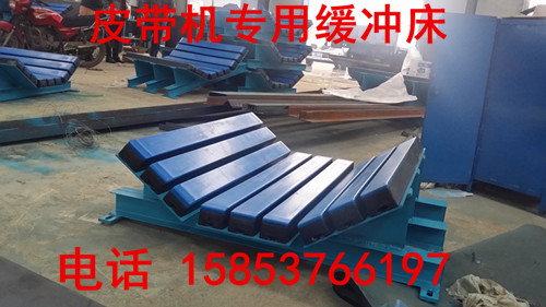 皮帶機(jī)緩沖床主要用于皮帶機(jī)導(dǎo)料槽下方的落料口處,當(dāng)物料下落時(shí),緩沖床利用自身彈性對(duì)物料下落到皮帶上的沖擊力進(jìn)行處理,使沖擊力達(dá)到最小,以保證皮帶機(jī)正常運(yùn)行。除此之外皮帶機(jī)緩沖床的表層緩沖條擁有五百萬(wàn)分子量的超高分子聚乙烯板面,該超高板于皮帶呈面面接觸,使?jié)櫥赃_(dá)到最高,摩擦系數(shù)降至最低。