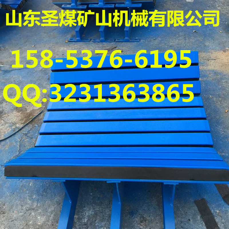 落料緩沖床是用在帶式輸送機導料槽下方,落料點膠帶的下面。它采用摩察系數(shù)小的超高分子工程塑料制成,并通過高彈性的橡膠緩沖條固定在鋼支架上,依靠對輸送帶的有效支撐及吸收物料對輸送帶的沖擊,降低了輸送帶的磨損,延長了輸送帶的使用壽命。它可有效替代緩沖床托輥不傷膠帶,緩沖效果良好,穩(wěn)定,且防止膠帶撕裂及導料槽處散料及粉 塵的外溢。為廣大火電廠,煉鋼廠,玻璃廠,水泥廠,礦山及港口碼頭等的膠帶輸送機系提供良好的緩沖環(huán)保設(shè)備。